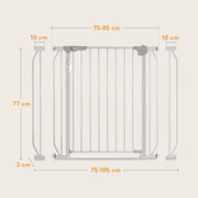 El rango de 75 a 85 cm te permitirá instalarla en espacios de diferentes anchos. ¡Si usas las extensiones, puede alcanzar incluso 105 cm! El sensor crepuscular con interruptor enciende el LED que ilumina la barrera por la tarde y por la noche. ¡Con una sola pila AAA, el diodo funciona hasta 240 horas!