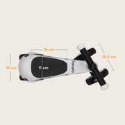 El andador Lionelo Sammy White es un producto pensado para niños, pero los padres también lo tocan. Por eso, nuestro andador es fácil e intuitivo de ensamblar. Basta un momento y está listo para la diversión. Y si aparece suciedad, un paño húmedo será suficiente para que brille como nuevo. ¿Sustitución de las pilas en el sistema de iluminación? No hay problema, están en el volante del conductor.