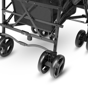 Las ruedas delanteras están equipadas con suspensión y bloqueo de la dirección, lo que facilita el balanceo tranquilo en línea recta.