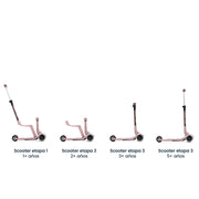 - Diseño multi-etapas: Transforma de correpasillos para los más pequeños a un scooter completo para niños mayores.