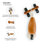 El manillar tiene manijas de goma TPR antideslizantes para que el niño pueda agarrarse fuerte y firmemente. La función del limitador de rotación del volante protege contra las caídas en caso de realizar maniobras bruscas: montar CUTIE es siempre seguro.