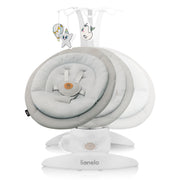 lionelo Mell es una hamaca mecedora ergonómica diseñada para bebés desde el nacimiento hasta que alcanzan los 9 kg o dominan la capacidad de sentarse. El equipo ofrece hasta 3 movimientos de mecer únicos y hasta 5 velocidades de balanceo diferentes. El asiento giratorio EasyTurn de 360° permite cambiar la dirección del balanceo y mantener el contacto visual con su pequeño. Pensando en las necesidades cambiantes de su hijo, la hamaca mecedora permite ajustar en 3 etapas la inclinación del respaldo: a la posición reclinada, semirreclinada y semisentada. Un detector automático de movimientos activa la música y el balanceo suave en cuanto el bebé empieza a hacer movimientos inquietos. Del confort del bebé se encarga el cojín de bambú suave, que proporciona una posición ergonómica. Por otro lado, el arco con jueguetes y hasta 12 melodías y 2 sonidos de la naturaleza precargados garantizarán el entretenimiento. Mediante Bluetooth, los padres también pueden conectarse al equipo y encender la música que deseen.