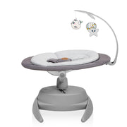 El asiento giratorio permite cambiar la posición de la hamaca mecedora con un solo movimiento, sin tener que mover todo el equipo. Esto también permite al bebé cambiar la dirección del balanceo. Y lo que es más importante, la base giratoria también permite a los padres mantener un contacto visual continuo con el niño.