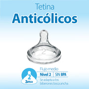 Es necesario utilizar las tetinas Dr. Brown's o perderá el beneficio de la tecnología anticólicos (evita que los bebés ingieran aire).