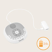 La batería integrada hace que el dispositivo sea inalámbrico, lo que facilita su transporte en función de dónde se encuentre el niño en cada momento. La batería de larga duración garantiza hasta 24 h de funcionamiento, mientras que el cable USB-C incluido permite cargar el dispositivo rápidamente.