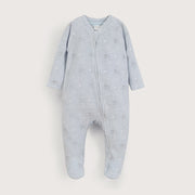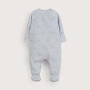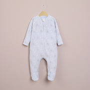 Osito de bebé niño, en color celeste con tiernos elefantes estampado. cierre frontal que facilita el cambio de pañal y patitas.