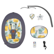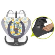 El columpio hamaca Rina de Lionelo está equipado con cinturones de seguridad de 5 puntos y almohadillas antideslizantes para proteger el suelo de los arañazos. También está equipado con un motor cuyo funcionamiento es casi inaudible. Haces todo desde el panel de control táctil o mediante el mando a distancia. Están disponibles dos modos de alimentación: con pilas o desde la red eléctrica. El producto tiene una entrada USB.