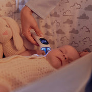 - Por las funciones que permiten una medición nocturna sin despertar al bebé y las que simplifican la lectura de la temperatura de alarma.