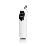 El termómetro FeverScan es muy intuitivo y fácil de usar. Para saber si la temperatura es correcta, ni siquiera tiene que mirar la pantalla: en caso de temperatura elevada, el termómetro le avisa mediante un pitido. Las desviaciones de la norma también se indican mediante un LED de 3 colores. El termómetro ni siquiera necesita apagarse después de la medición: para ahorrar energía se apaga solo al cabo de 30 segundos. Se incluye una bolsa de buen gusto para guardarlo.