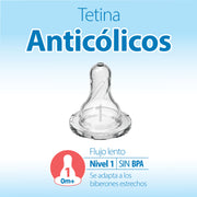 Es necesario utilizar las tetinas antireflujo Dr. Brown’s en las mamaderas de la misma marca o perderá el beneficio de la tecnología anti-cólicos (evitan que los bebés ingieran aire durante la alimentación).