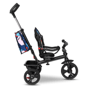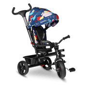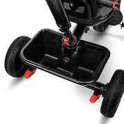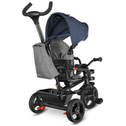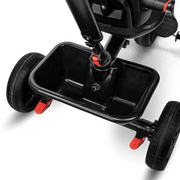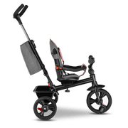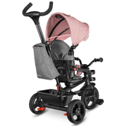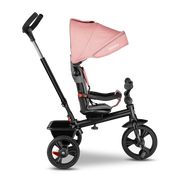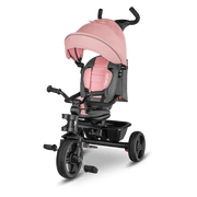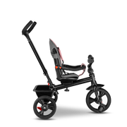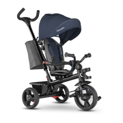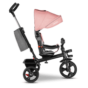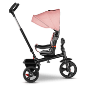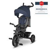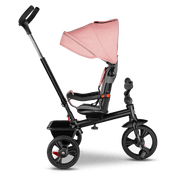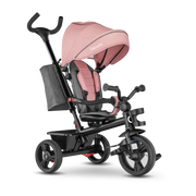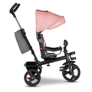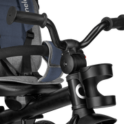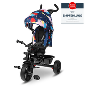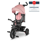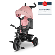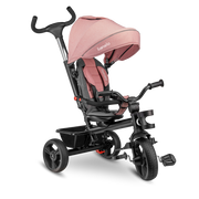 La altura ajustable del manillar de los padres (91 a 107 cm) permite ajustar el mango a la altura del cuidador, lo que facilita el uso diario. Una cesta para artículos pequeños, una bolsa práctica y un portavasos aumentan significativamente la funcionalidad del producto. El triciclo también está equipado con un asa de transporte para poder llevarlo de manera cómoda.