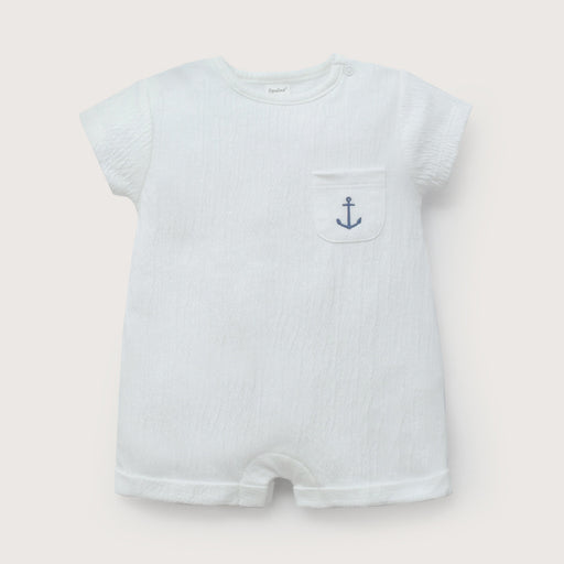 Bombacho de bebé niña elastizado con bordado en el pecho, broches reforzados en entrepiernas y hombro.
