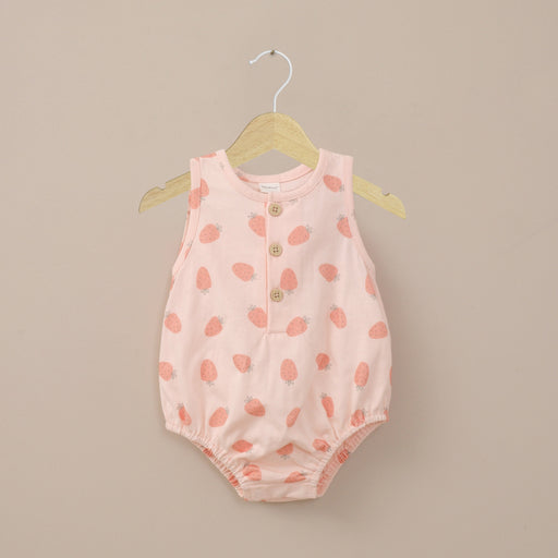Bombacho estampado con frutillas en tonos rosa, con broches reforzados en entrepiernas.