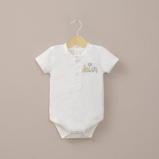 Body manga corta bebé niño con cuello redondo, plaquet delantero y estampado central