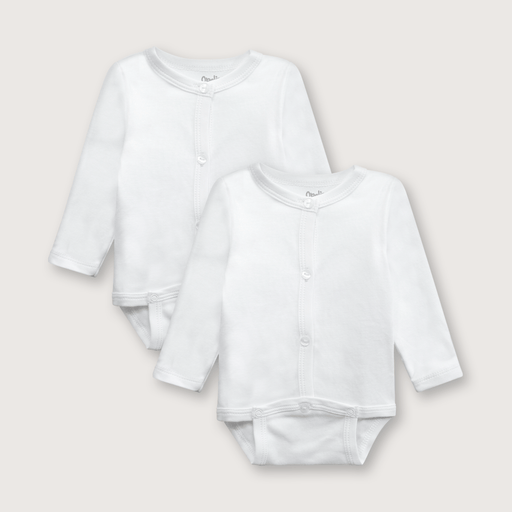 Pack body unisex blanco. Manga larga, cuello redondo y broches en la entrepiernas y frente para una muda rápida y fácil para tu bebé. 100% algodón ...