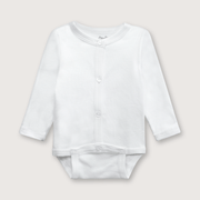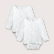 Pack body unisex blanco. Manga larga, cuello redondo y broches en la entrepiernas y frente para una muda rápida y fácil para tu bebé. 100% algodón peruano.