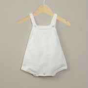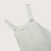Bombacho tejido en punto pointelle de color blanco,tirantes regulables y entre piernas con botones.