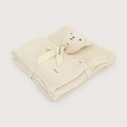 Un abrazo suave que arropa sus sueños y un pequeño osito de algodón que lo acompaña en cada caricia.