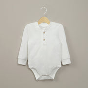Body manga larga bebé con plaquet delantero, puños y broches reforzados en entrepiernas.