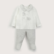 Conjunto de 2 piezas; calidad suave y elastizada, polerón cuello camisero, broche en espalda, pantalón con cintura elastizada y patita.