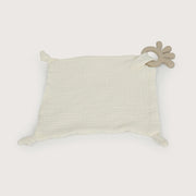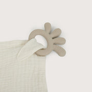 Mordedor de tres piezas con forma de osito, de colores rosados para niña. contiene dos piezas de silicona y una de madera. ideal para la etapa de dentición.
