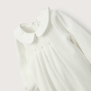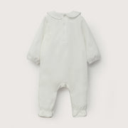 Osito de plush super suave con cuello de algodón, 2 pinzas junto a un pequeño bordado color silver en el centro.