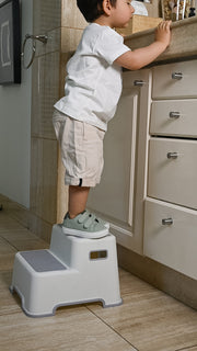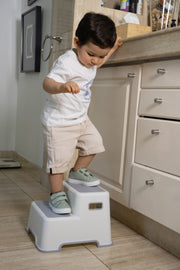 El piso de 2 peldaños ayuda a que los niños alcancen lavamanos, inodoro o estantes con facilidad. Fabricado con materiales antideslizantes, brinda estabilidad y confianza en cada paso.