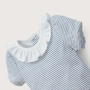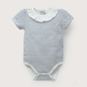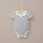 Body estampado con lineas de calidad super suave y elastizada, manga corta, cuello con vuelitos y broches en entrepiernas