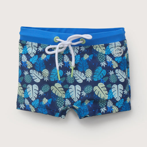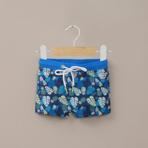 Short traje de baño de niño, con pretina elásticada y ajustador con cordón. con forro interior en frente. color azul marino con full estampado play...