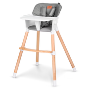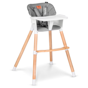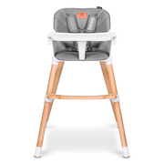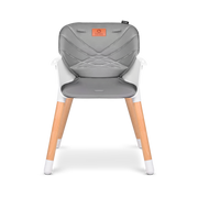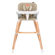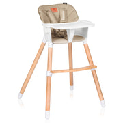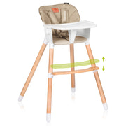 La amplia bandeja es extraíble y apta para el lavavajillas, lo que facilita la limpieza después de la comida. Latapicería de ecopiel y la tela del arnés de seguridadde 5 puntos hacen que la limpieza sea lomás fácil posible. La separación entre las patas y las almohadillas antideslizantes para las patas garantizan una estabilidad adecuada, incluso cuando los niños son mayores y más fuertes. Cabe mencionar también la estética, ya que el color beige del asiento y arnés combina con el color de la madera de haya, aportando una dosis extra de armonía, calidez y tranquilidad al hogar.