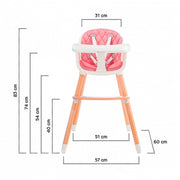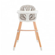 Tiene un hermoso diseño; colores neutros y barras de soporte de madera, combinarán con cualquier estilo de decoración de interiores. La seguridad y comodidad son los primeros aliados en la composición de esta silla, cuenta con arnés de seguridad de 5 puntas y un bloqueo de asiento, que garantizarán una posición segura y estable del niño, durante sus comidas.