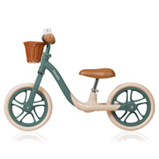 lionelo Alex Plus Green Forest es el compañero perfecto para niños a partir de 3 años, permitiéndoles explorar el mundo sobre dos ruedas de forma segura. Con su estructura ligera de acero y sus ruedas de espuma EVA que no necesitan mantenimiento, Alex Plus es extremadamente fácil de manejar. Para evitar confusiones, hemos diseñado la bicicleta de forma que solo sea posible montar el manillar de una manera: la correcta. El eje de la rueda y el manillar siempre coinciden, lo que garantiza la integridad estructural y una seguridad adicional durante la marcha. Las empuñaduras de goma blanda antideslizante y el limitador de dirección intuitivo del manillar proporcionan una protección adicional. La bicicleta de equilibrio también cuenta con un sillín espacioso y reposapiés en relieve para aumentar la comodidad. Además, la funcionalidad de la bicicleta también se ve reforzada por una práctica cesta para accesorios.