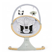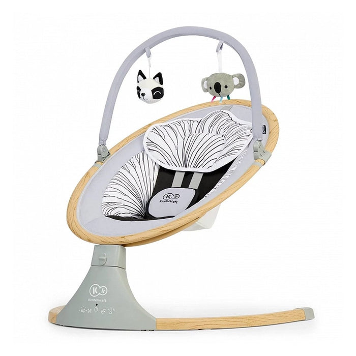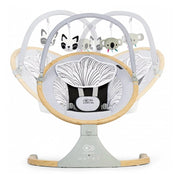 El arco ajustable de LUMI se puede instalar por ambos lados. Tiene 2 juguetes que se pueden quitar y que le encantarán al niño. No se puede levantar la silla mecedora por el arco.
