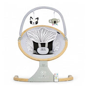 Esta silla mecedora incluye un control remoto: no tendrás que abandonar tus actividades para apagar el balanceo. El arco con juguetes incluido y el cojín blando, harán más agradable el tiempo que pasa tu bebé en la silla mecedora.