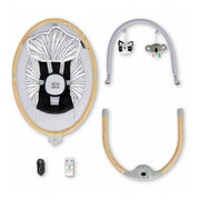 La silla mecedora LUMI viene con un control remoto que controla la vibración y las melodías. Gracias a esto no hay que acercarse a la hamaca cada vez que quieras bajar la intensidad de la vibración o cambiar de canción.