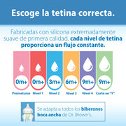 Es necesario utilizar las tetinas antireflujo Dr. Browns en las mamaderas de la misma marca o perderá el beneficio de la tecnología anticólico (evita que los bebés ingieran aire durante la alimentación).